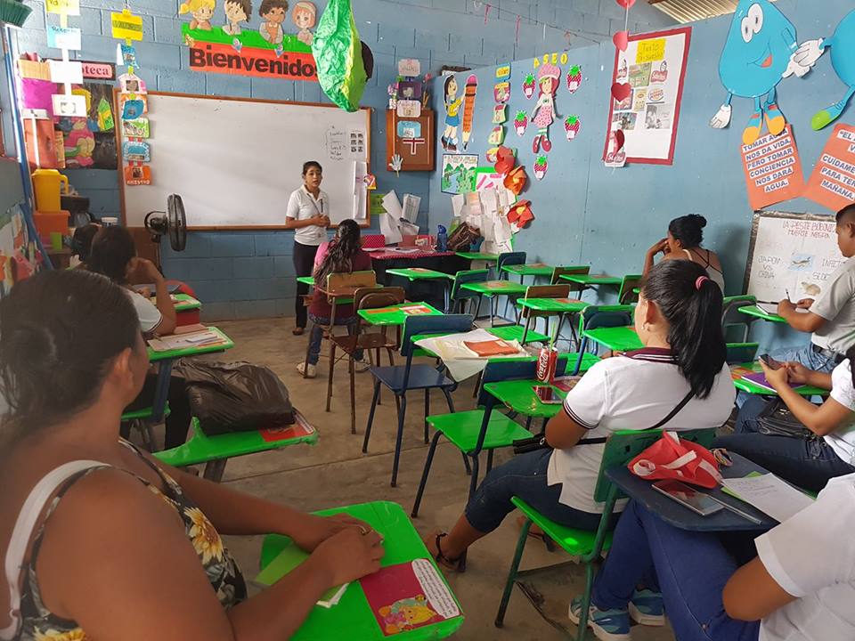 Capacitación, Barrio Bellos Horizontes, San Benito, Petén, en la cual las promotoras sociales desarrollaron las temáticas de: Sistema de Consejos de Desarrollo Urbano y Rural, Constitución Política de la República de Guatemala, Ley de descentralización y Participación Ciudadana